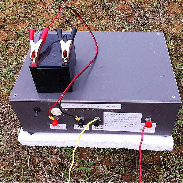 设备采用 12V 电瓶供电,开机后可形成防护电场。